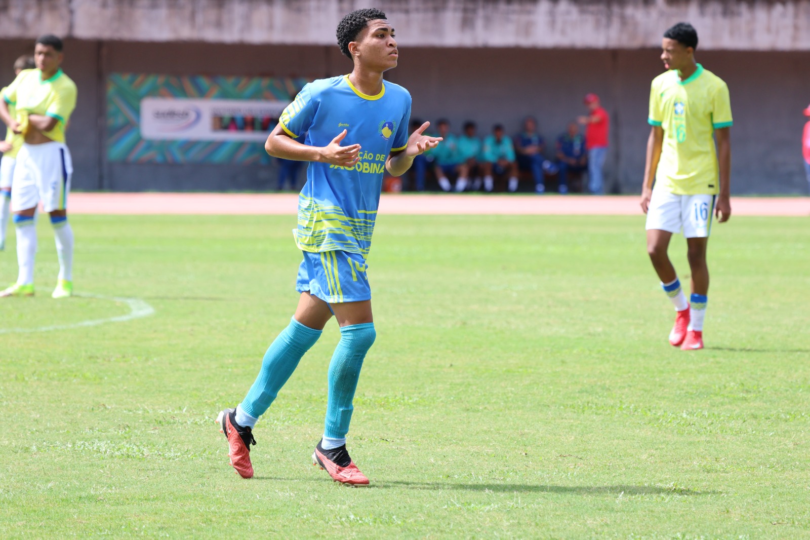 “O futebol é o que mais gosto de fazer. Para a gente do interior, é uma possibilidade imensa de sair da nossa cidade e conhecer outros lugares. O futebol proporciona isso! Eu amo fazer isso. Me tira todo o peso em jogar”, conta João Lucca Oliveira, volante da equipe do Jacobina, que disputou a segunda rodada nesta quinta-feira, 03, contra a Seleção Brasileira Sub-15.